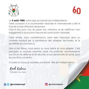 60ème anniversaire de l’indépendance du Burkina Faso : le message du Président Roch Kaboré
