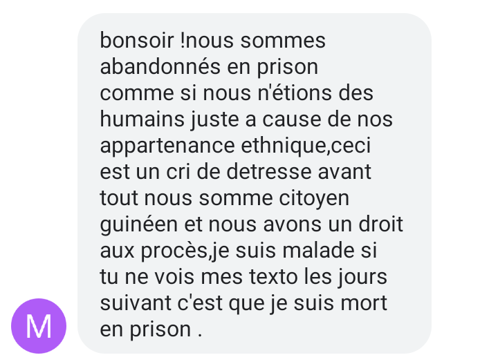 C’est la deuxième fois qu’il contacte notre rédaction. Ce, pour témoigner sur le calvaire qu’il subit dans sa cellule de Siguiri. Dans l’après midi de ce samedi, 11 juin 2021, il s’est confié à nouveau. Il dit qu’il est « gravement malade ». Selon lui, c’est à tel point qu’il ne pense pas survivre. Il évoque la « torture » comme cause de la dégradation de sa santé.