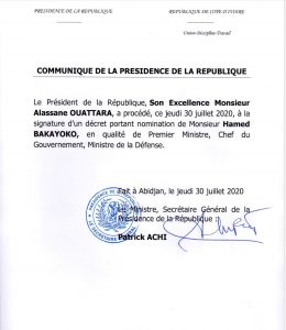 Le ministre de la défense Nationale, Hamed Bakayoko est nommé ce jeudi 30 juillet2020, au poste de premier ministre ivoirien, succédant à feu Amadou Gon Coulibaly.