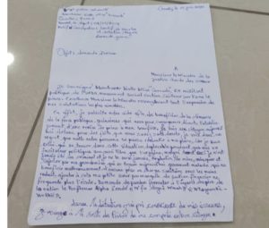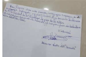 AccueilA la une A la une Depuis la maison centrale : Boubacar Diallo ”Grenade” présente ses excuses au président Alpha Condé (lettre) By fatala 18 juin 2021 0 149 FacebookTwitterPinterestWhatsApp Partager FacebookTwitterPinterestWhatsApp Article précédentCôte d’Ivoire : Laurent Gbagbo foule enfin le sol de son pays après dix ans d’absenceArticle suivantL’OMS préoccupée par l’expansion croissante du Covid-19 en Afrique fatalahttp://www.fatala-infos.net Articles Liés A la une Présidentielle du 28 décembre : Malgré les obstacles, Dr Ben Youssouf Keita promet de “rester dans la course” A la une Présidentielle 2025 : le Bloc Libéral prône le respect de la parole donnée par le CNRD ! A la une Dixinn : un peintre chute mortellement du 7è étage d’un immeuble R+13 ! LAISSER UN COMMENTAIRE Annuler la réponse Commenter : S'il vous plaît entrez votre commentaire! Nom :* S'il vous plaît entrez votre nom ici Email :* Vous avez entré une adresse email incorrecte! Veuillez entrer votre adresse email ici Site : Enregistrer mon nom, email et site web dans ce navigateur pour la prochaine fois que je commenterai. Δ Rester connecté0FansJ'aime3,912SuiveursSuivre22,700AbonnésS'abonner Derniers articles A la une Présidentielle du 28 décembre : Malgré les obstacles, Dr Ben Youssouf Keita promet de “rester dans la course” A la une Présidentielle 2025 : le Bloc Libéral prône le respect de la parole donnée par le CNRD ! A la une Dixinn : un peintre chute mortellement du 7è étage d’un immeuble R+13 ! A la une 67 ans après, quel système éducatif pour la Guinée ? (Aboubacar Mandela CAMARA) Voir plus