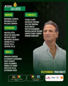 Au compte de la 9ème et 10ème journées des éliminatoires de la coupe du monde 2026, le sélectionneur de la Guinée a rendu officiel la liste des joueurs retenus pour ces deux journées. Le Syli affronte, le Mozambique à l’Estádio Nacional do Zimpeto, le 9 octobre (16h GMT), et le Botswana au stade Mohammed V de Casablanca au Maroc, le 14 octobre 2025 (16h GMT).