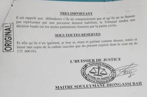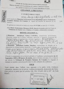Le commissaire divisionnaire Aboubacar Fabou Camara, directeur de la police judiciaire et Mohamed Lamine Simakan, commandant de brigade de répression et d’intervention doivent comparaître à l’audience correctionnelle du 24 septembre 2020, à 8 Heure du matin.