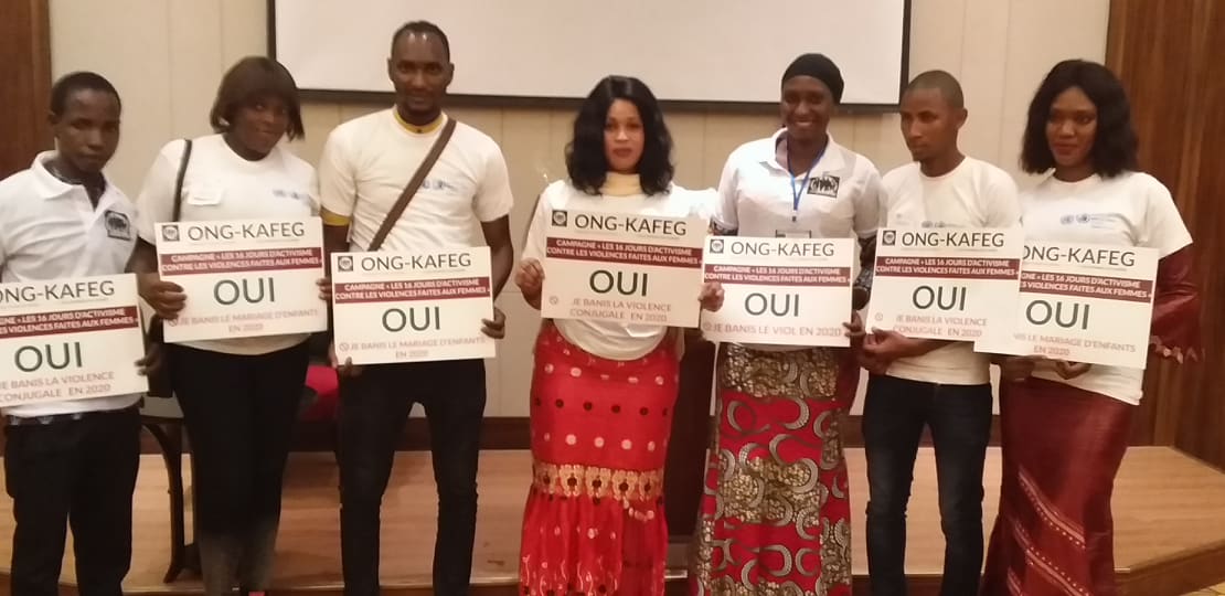 notre ONG a initié une campagne de 16 jours sur l’activisme contre les violences faites aux femmes. au cours de cette campagne, l’ONG KAFEG a travaillé sur trois (3) thématiques qui avaient pour comme slogans :