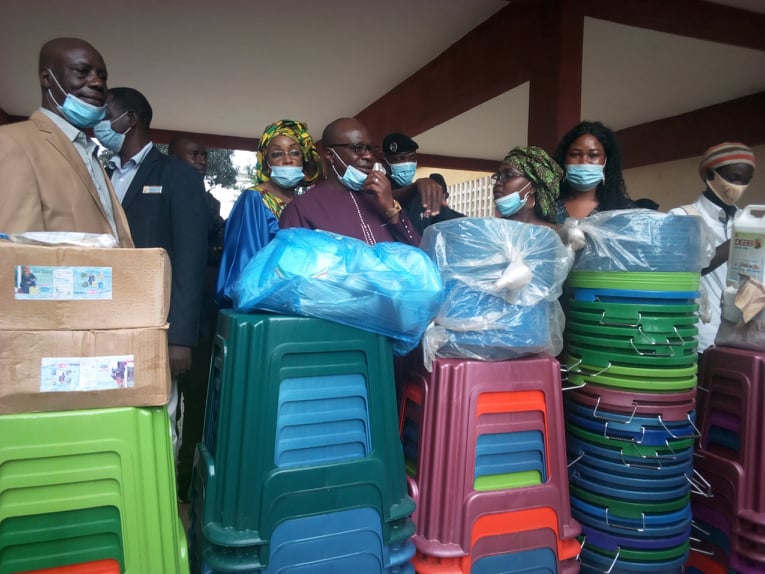 A l’occasion des épreuves de BEPC ce mardi, 18 août 2020, les conseillères des conseils communaux de Conakry ont distribué des kits sanitaires aux différents centres d’examens de la capitale. Ce don de kits sanitaires est composé de sceaux, des bavettes, de kits de lavage des mains, des gels, eau de javel etc. L’objectif est de protéger les candidats contre la covid-19.