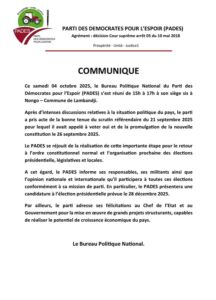 Le Parti des Démocrates pour l’Espoir (PADES) annonce sa participation à la prochaine présidentielle du 28 décembre 2025. La décision a été prise ce samedi 04 octobre, au siège national du PADES sis à Nongö dans la commune de Lambanyi, au cours d’une réunion du bureau exécutif.