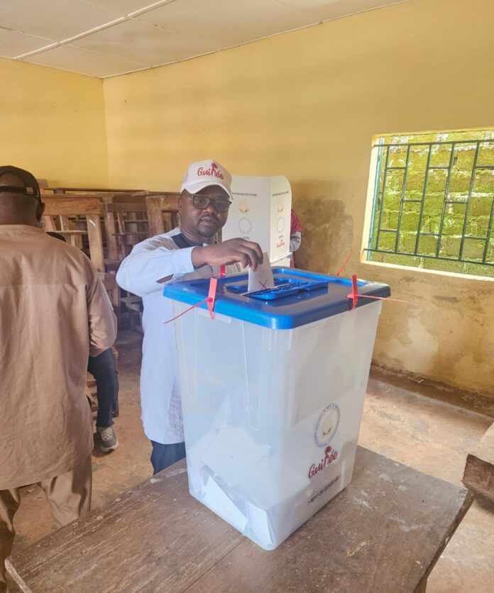 Sékou Amadou Cissé président du Mouvement les Acteurs à la Continuité Simandou 2024 de Yimbaya écoles qui vient d’accomplir son devoir citoyens à saluer le climat qui a marquée ce processus électoral c’est pourquoi il a profiter de notre micro pour car selon lui seule une constitution peut faire développer un pays.