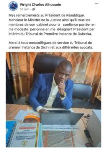 Le juge du tribunal de première instance de Dixinn, Alphonse Charles Wright a été muté au tribunal de première instance de Dubréka.