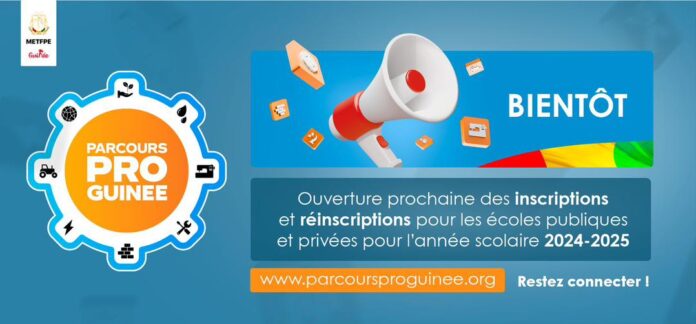 Le Ministère de l’Enseignement Technique, de la Formation Professionnelle et de l’Emploi a le plaisir d’annoncer l’ouverture prochaine des inscriptions pour l’année académique 2024-2025 sur sa plateforme numérique PARCOURSPRO. À cette occasion, les jeunes Guinéens et Guinéennes désireux de se former dans des métiers techniques et professionnels sont invités à venir s’inscrire aux concours d’entrée dans les institutions d’enseignement technique et professionnel à travers tout le pays.