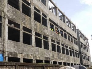 Le bâtiment du lycée bonfi en reconstruction est un R+3. Il contient des bureaux, une bibliothèque, des latrines et un espace de jeux pour les apprenants.