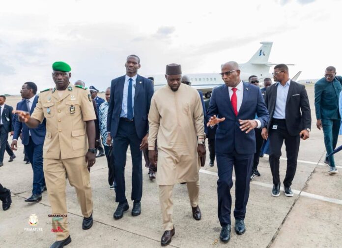 𝐋𝐞 premier ministre du Sénégal, 𝐎𝐮𝐬𝐦𝐚𝐧𝐞 𝐒𝐎𝐍𝐊𝐎, est arrivé ce dimanche 1er juin 2025 à Conakry. Cette visite s’inscrit dans le cadre du renforcement des liens historiques de coopération entre le Sénégal et la Guinée dans plusieurs domaines stratégiques.