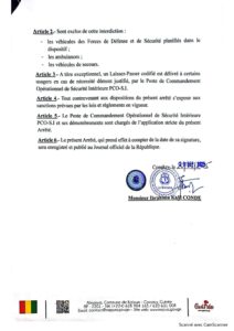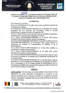 Le Ministre de l’Administration du Territoire et de la Décentralisation (MATD), dans cet arrêté interdit toute circulation ce 21 septembre 2025 de 6h à 18h. Il annonce dans le même Arrêté que, seuls les véhicules de défense et de sécurité, ambulances et secours sont autorisés.