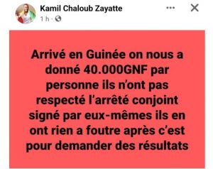 « Arrivés en Guinée, on nous a tendu que 40 mille francs guinéens par personne. Ils n’ont pas respecté l’arrêté conjoint par eux-mêmes. Ils en ont rien à foutre, après, c’est pour demander des résultats » fustige l’ancien défenseur du Syli.