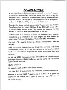 Dans ce communiqué que nous avons sous la main, il déclare ceci : « la maison Kem’s production na ni le droit, ni la qualité de m’interdire de prester sur toute l’étendue du territoire national. En tout état de cause, il n’est investi d’aucun pouvoir étatique pour prendre une telle décision contre moi… ».
