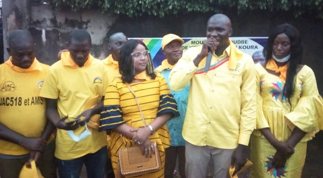 « Nous, jeunes du café sale vous remercions d’avoir accepté de venir dans notre quartier pour vous magnifier notre soutien indéfectible au parti au pouvoir, car nous sommes convaincus que c’est le Professeur Alpha Condé qui a le souci de la Jeunesse et des Femmes. C’est considérant tout cela que cette Jeunesse consciente et réfléchie s’engage pour accompagner Mr le Président, le Professeur Alpha Condé aux élections du 18 Octobre 2020 et s’engage également corps et âme pour répandre le message de paix, de solidarité et d’expliquer le programme de RPG aux différentes populations de Yimbaya pour que le parti au pouvoir puisse remporter cette élection à un coup KO et nous vous rappelons que cette clientèle du Café Sale de Yimbaya à toujours soutenue les actions du Professeur Alpha Condé et nous vous rassurons la victoire dès le 1 tour au candidat du RPG Arc-En-Ciel », a t-il déclaré.