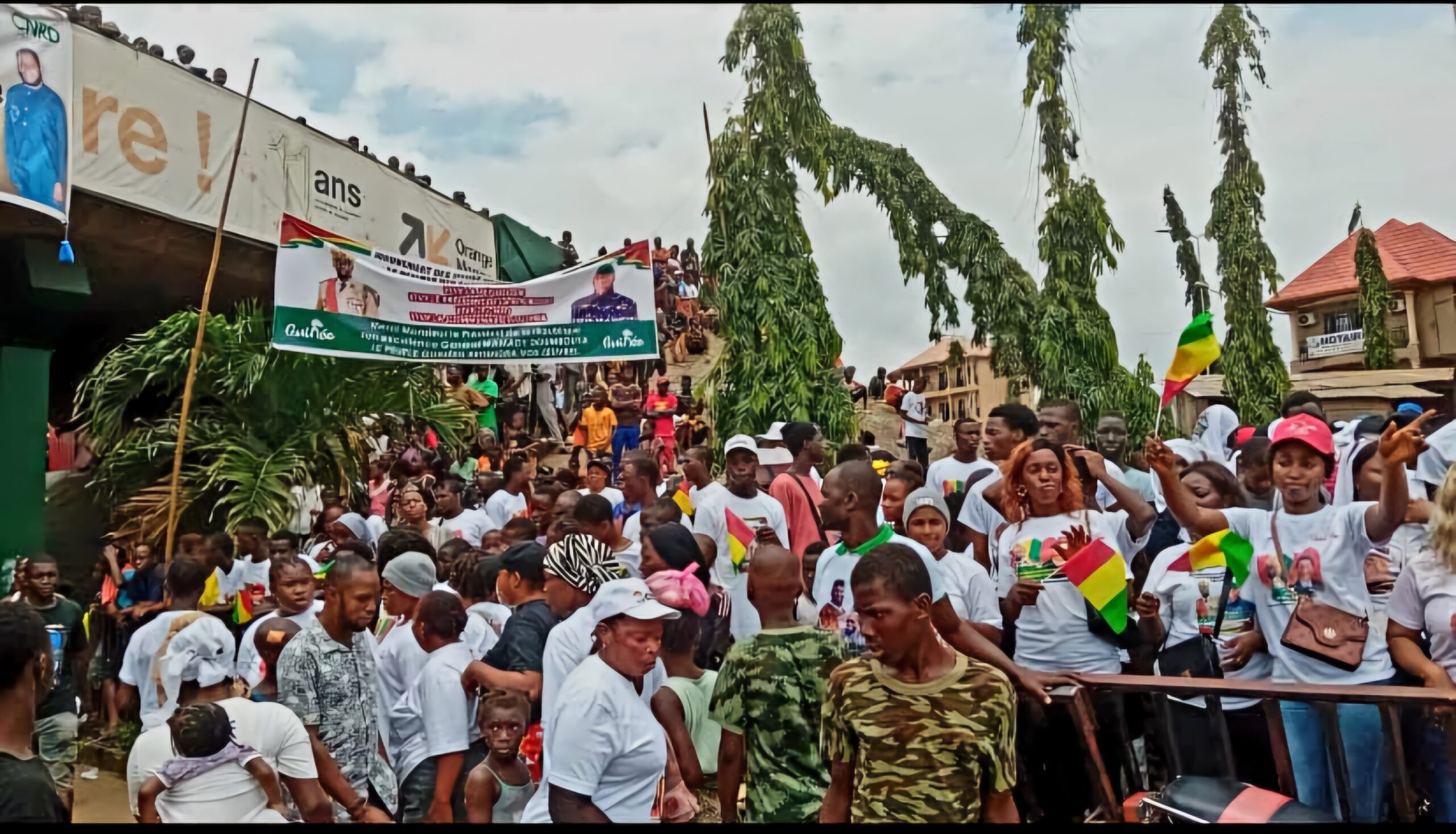 Cette marée humaine qui l’attendait depuis le petit matin était composée en majorité par des jeunes venus de divers horizons. Plusieurs mouvements de soutien y étaient également présents. C’est le cas du mouvement Merci mon Général dirigé par l’ancien Maire de la Commune urbaine de Matam, Ismaël Condé qui a installé un point d’animation au niveau du rond-point de l’aéroport où des centaines de partisans y étaient mobilisés. Ces soutiens du Général Mamadi Doumbouya habillés en tee-shirt blanc dansaient et chantaient les louanges du président de la transition. Une manière pour eux de remercier l’homme du 05 septembre 2021 pour les actes qu’il est en train de poser dans le cadre du développement de la Guinée.