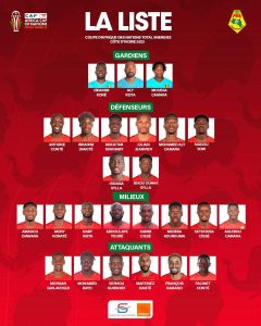 Ci-dessous les 25 retenus pour la CAN par le sélectionneur Kaba Diawara :