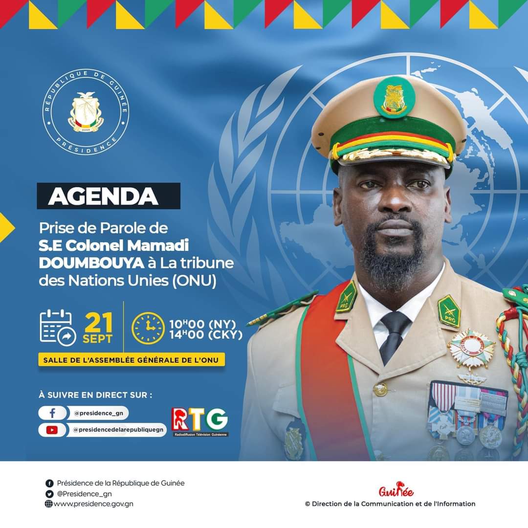 Ce jeudi 21 septembre 2023, le Colonel Mamadi Doumbouya, Chef de l’État, s’exprimera à la Tribune de l’Assemblée générale des Nations Unies (ONU).